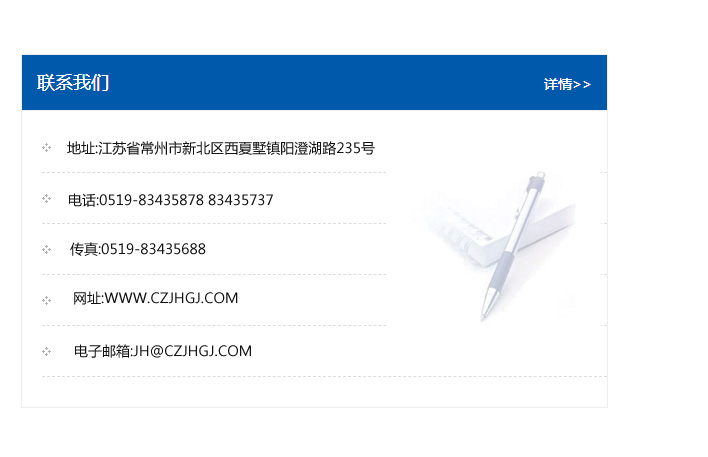 地址:常州市新北區友邦商務大廈1幢16、17層  電話:0519-85101652  傳真:0519-85112595  郵編:213022  網址:www.cz-jiayue_cn.ynavs.com  郵箱:xiajifengaa@163.com
